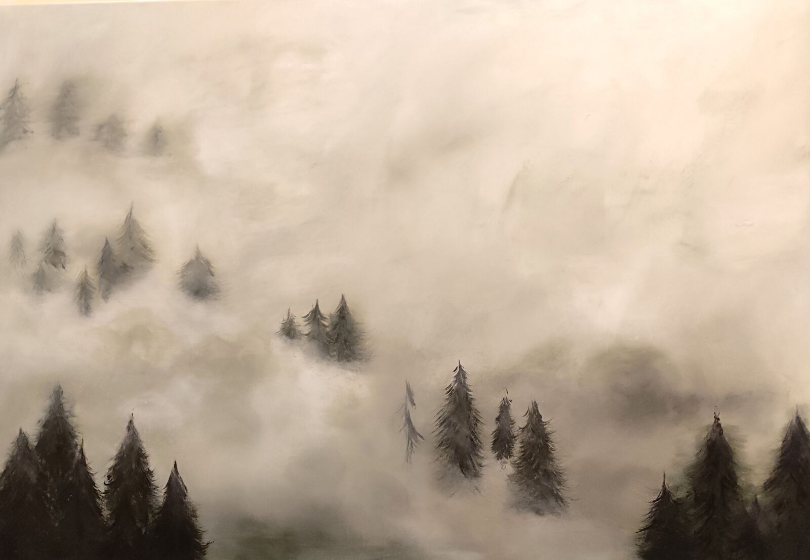| Opis: | Obraz przedstawia górski las we mgle. |