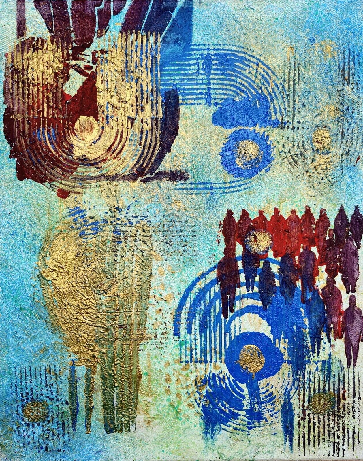 | Opis: | “Na celowniku”, z serii Społeczny krajobraz, to wielowarstwowa narracja o tożsamości zbiorowej w erze cyfrowej. Formy, nałożone na ludzką strukturę, funkcjonują jak cyfrowe siatki celownicze lub radary, mapując i kategoryzując każdy element. Precyzyjny celownik zostaje umieszczony na tej skondensowanej masie ludzi. Praca prowokuje pytania o cenę, jaką płacimy za przynależność do współczesnego społeczeństwa. |